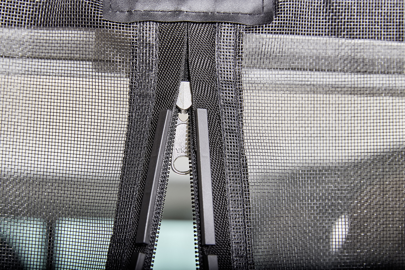 - Zugang kann geöffnet arretiert werden: Einfach aufrollen und mit den Klettbändern fixieren